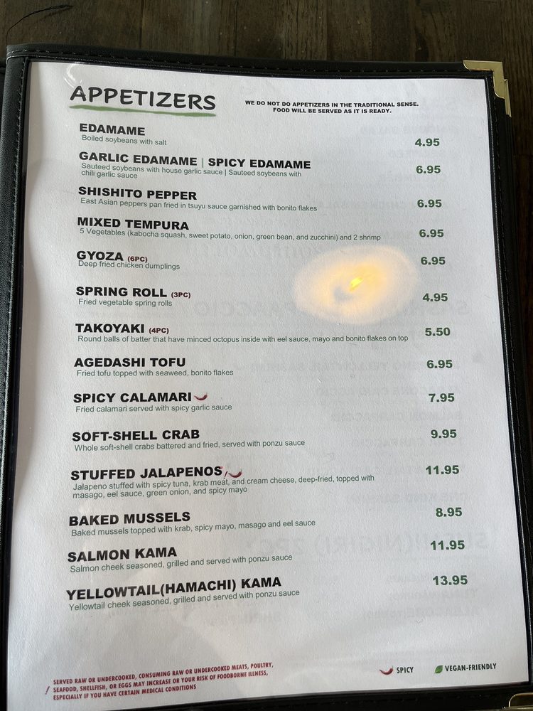 Deep-fried jalapeno stuffed with spicy tuna, krab, cream cheese , spicy mayo, eel sauce, masago, green onion