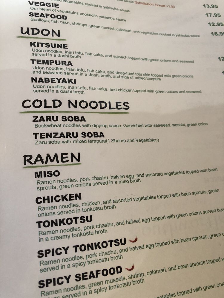 Fried tofu, spinach, green onions, udon noodles in broth.